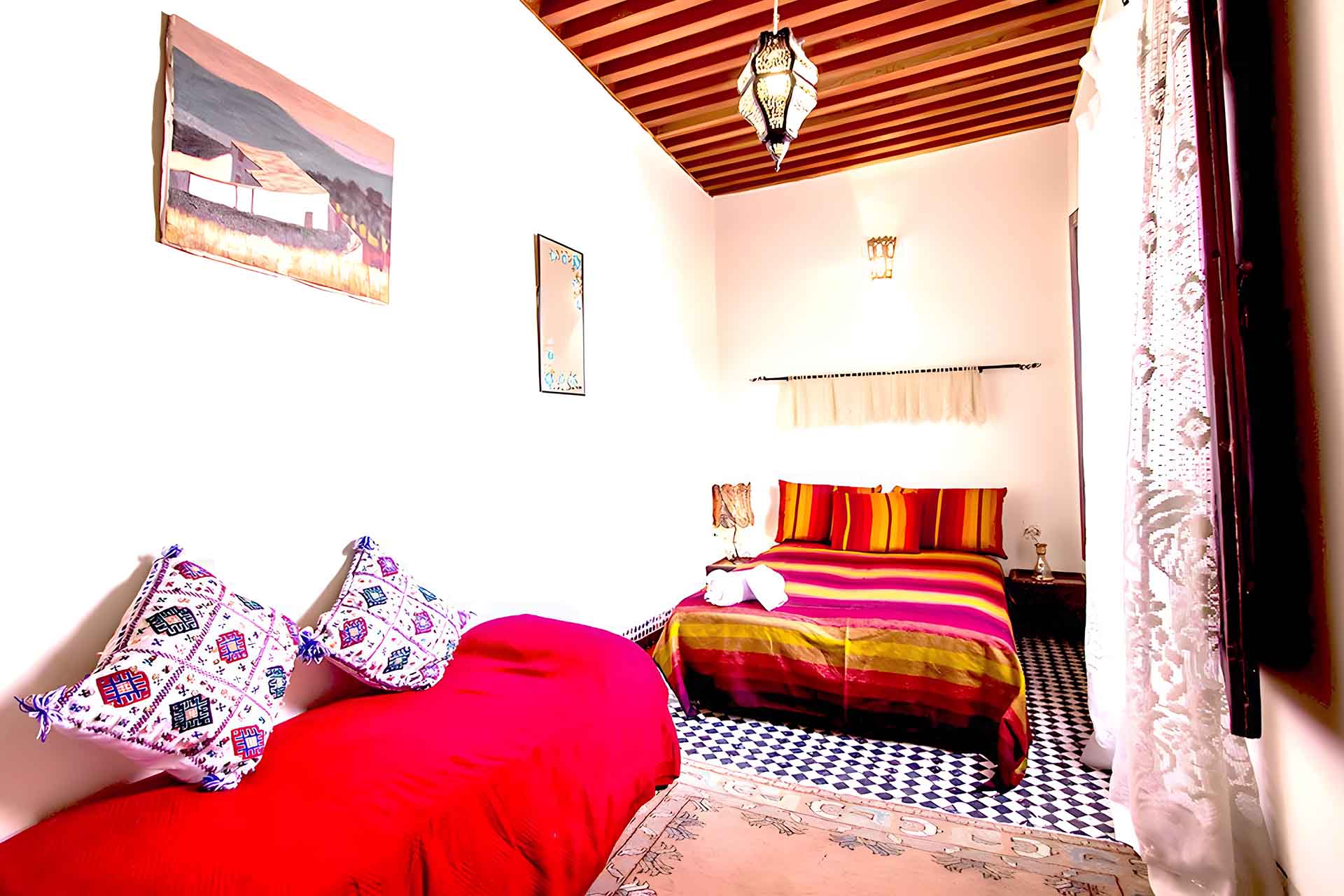 Additional amenities include air conditioning, heating, fan, wardrobe/closet, tiled flooring, and a private entrance. Located on upper floors accessible by stairs only, the Kenza Room is non-smoking and offers a perfect blend of comfort and authentic Moroccan charm in the heart of Fez.